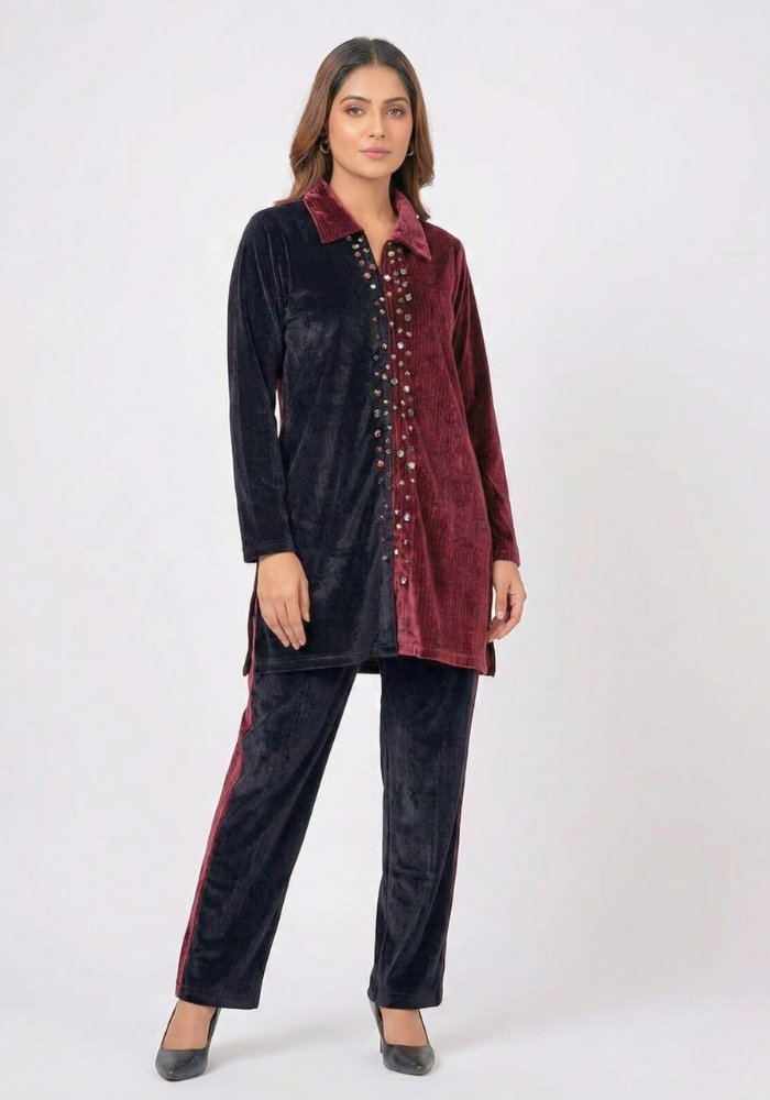 Dual Shade Partywear Velvet Co-ord Set