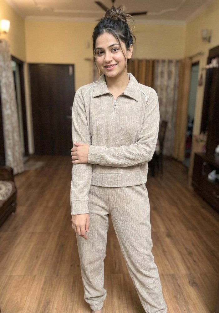 Comfortable Woollen Coord Set (Cream)
