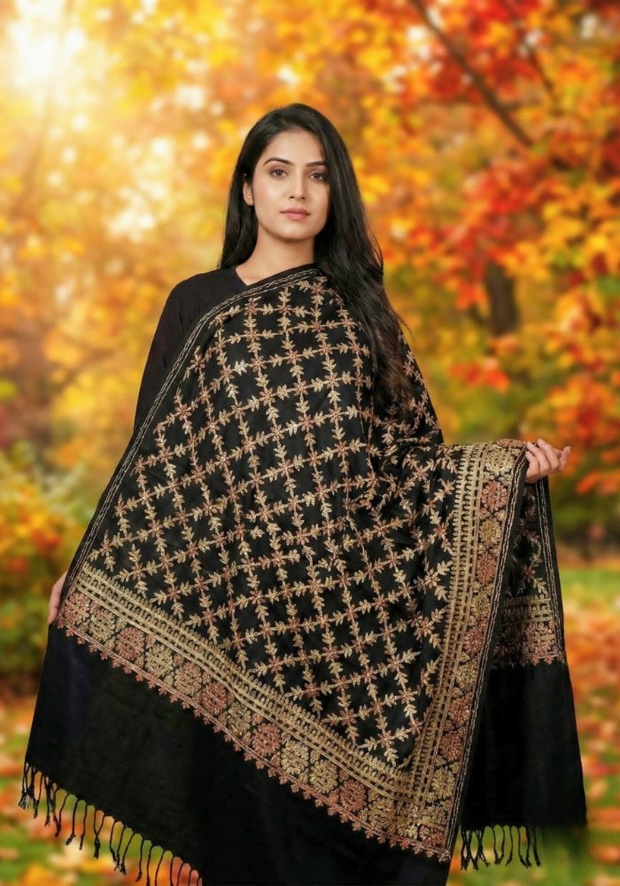 JANNAT 1 FULL KASHMIRI JAAL EMBROIDERY SHAWL ( BLACK)