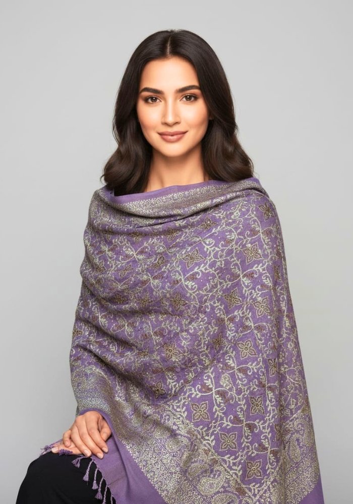 JANNAT 1 FULL KASHMIRI JAAL EMBROIDERY SHAWL ( LAVENDER)