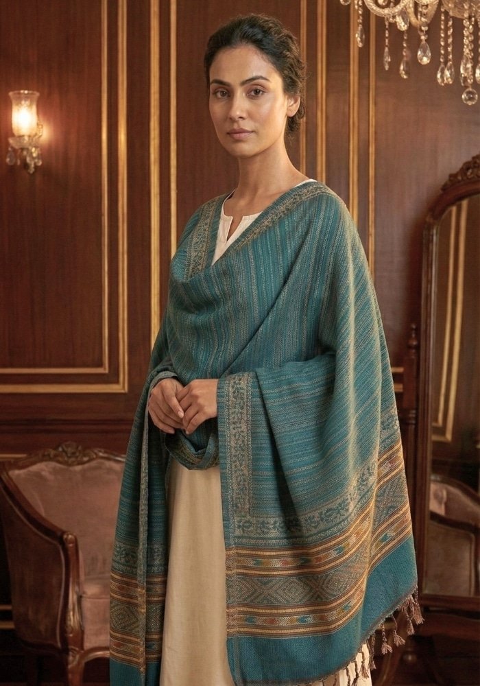 KULLU HANDWOVEN WOOL SHAWL AMAIRA 2 (TEAL GREEN)