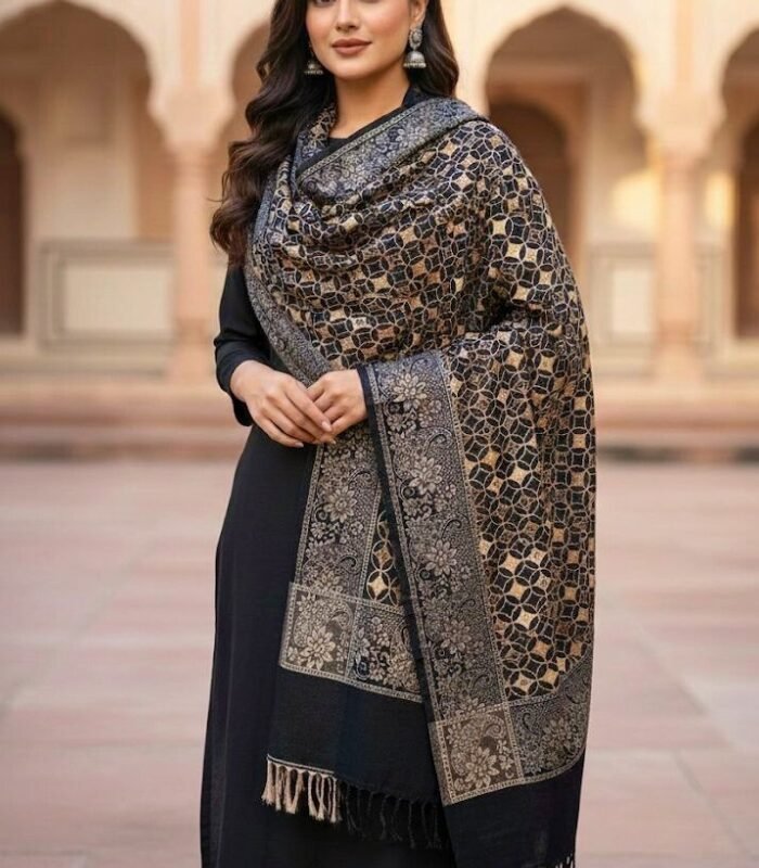Pure Wool Heavy Embroidery Akshita Wool Shawl – Classic Black with Zardozi Detailing