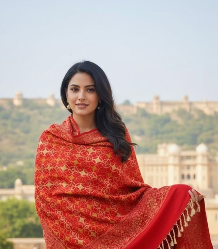 Pure Wool Heavy Embroidery Akshita Wool Shawl Deep Red Zardozi Detailing