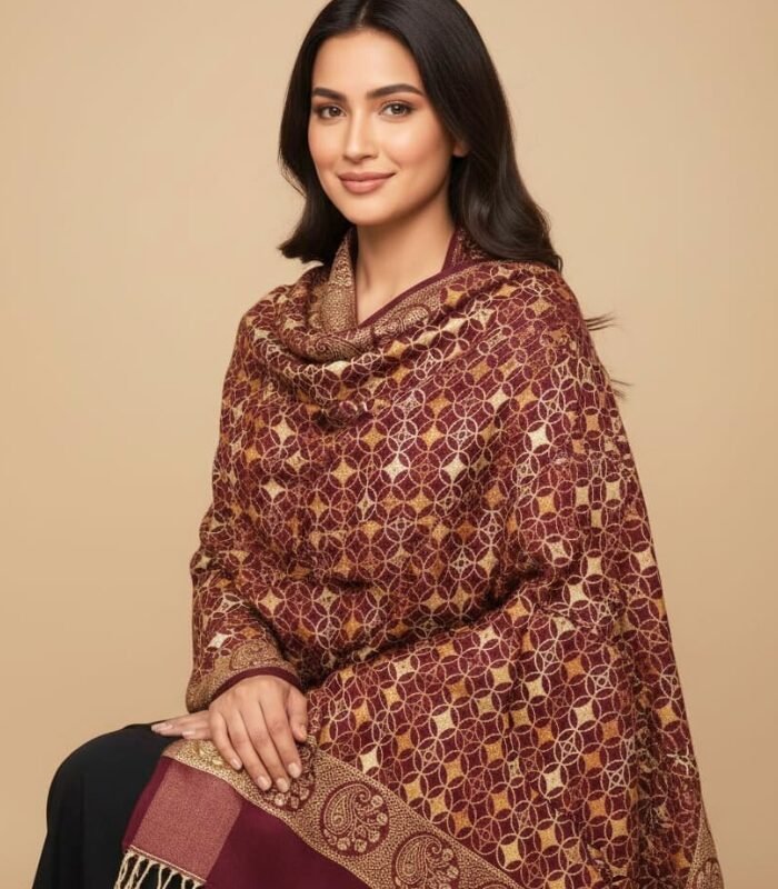 Full Kashmiri Aurilia Embroidery Geometric Pattern Border Shawl