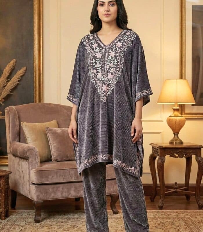 Kaftan Shaneel Co-ord Set – Grey (With Matching Earrings)