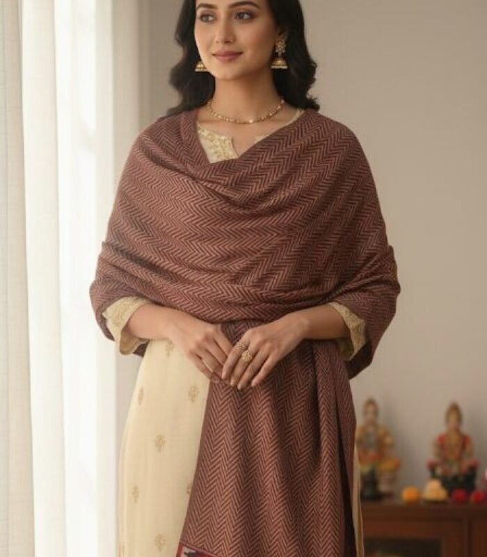 Make a graceful statement this winter with the Geometric Style Woollen Shawl from Kainchi Dhaaga. Crafted from soft, premium-quality wool, this shawl features a rich geometric pattern that blends contemporary design with traditional elegance.