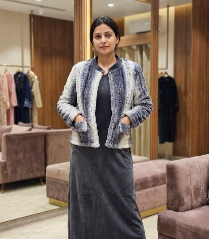 Grey Velvet Dress with Short Jacket – Partywear Set