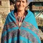 A classic blue Kullu wool shawl, handwoven with traditional Himalayan motifs, offering timeless elegance and cozy warmth.