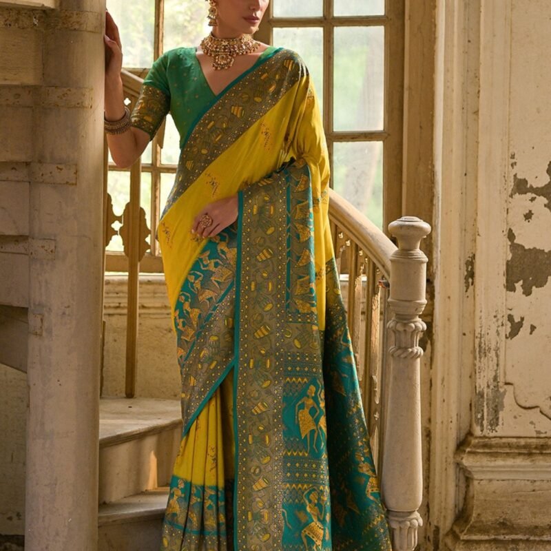 - Heavy Zari Woven Pallu with Cultural Motifs