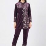 Indulge in rich winter elegance with this Velvet Co-ord Set with Resham Embroidery in Wine Color, designed to make a sophisticated statement. Crafted from luxurious velvet fabric, this ensemble offers a soft, plush texture with a warm and premium winter feel.
