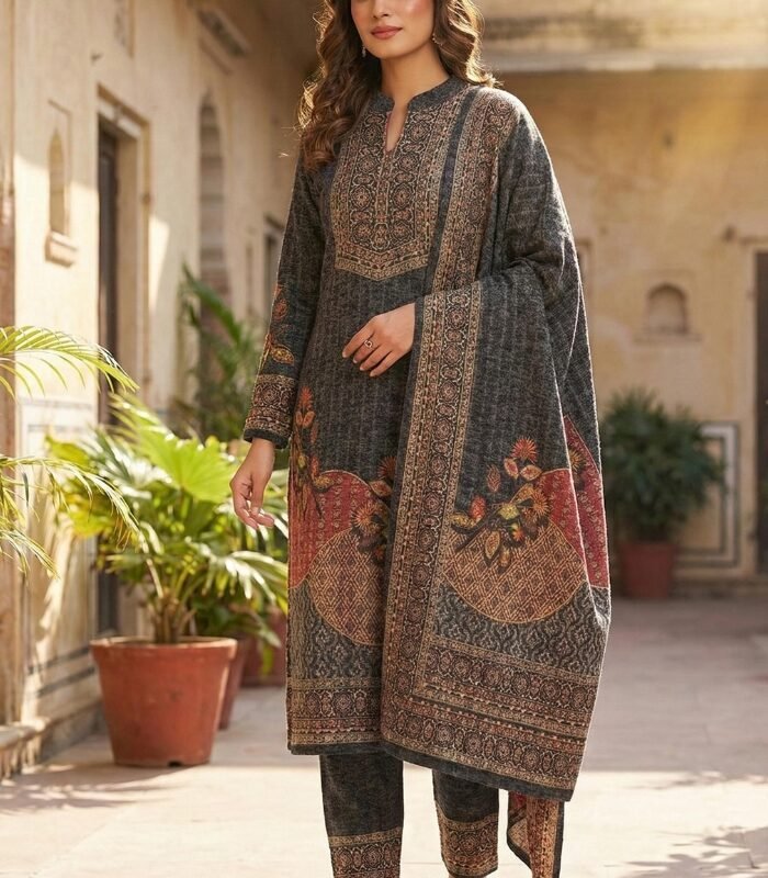 Woollen Suit 3 Pc Set – Top, Bottom & Stole