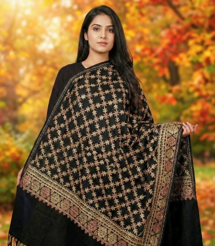 JANNAT 1 FULL KASHMIRI JAAL EMBROIDERY SHAWL ( BLACK)