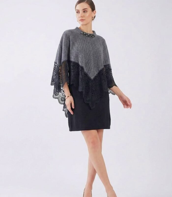 Grey & Black Poncho Dress – Elegant Winter
