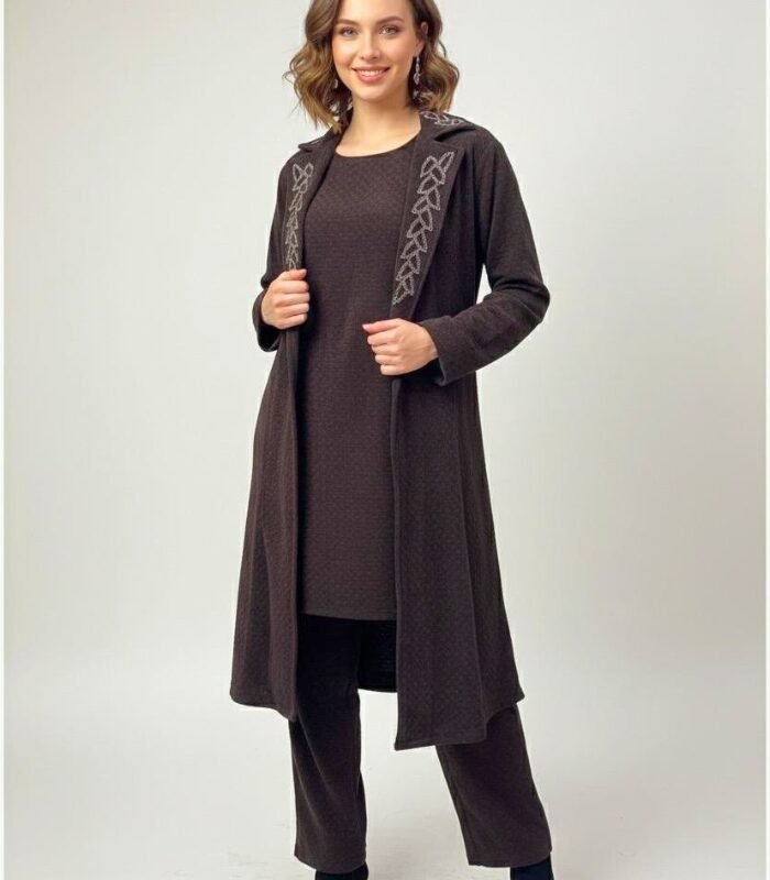 Woolen Shrug Coffee Color 3 pc Set with Top, Bottom and Long Coat/Shrug