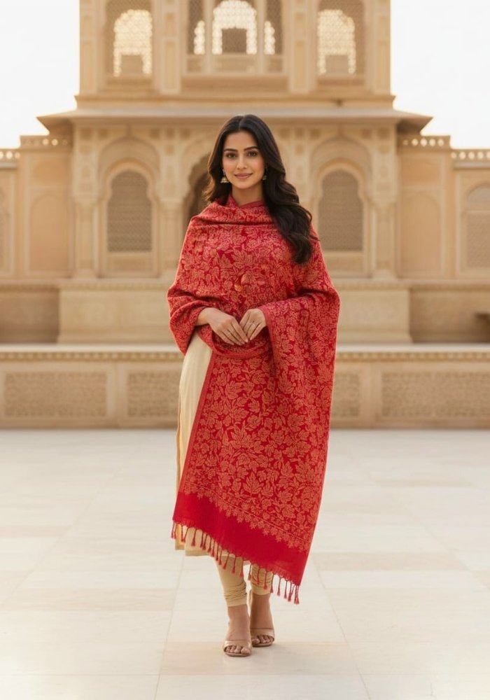 Crimson Red Floral Kashmiri Shawl