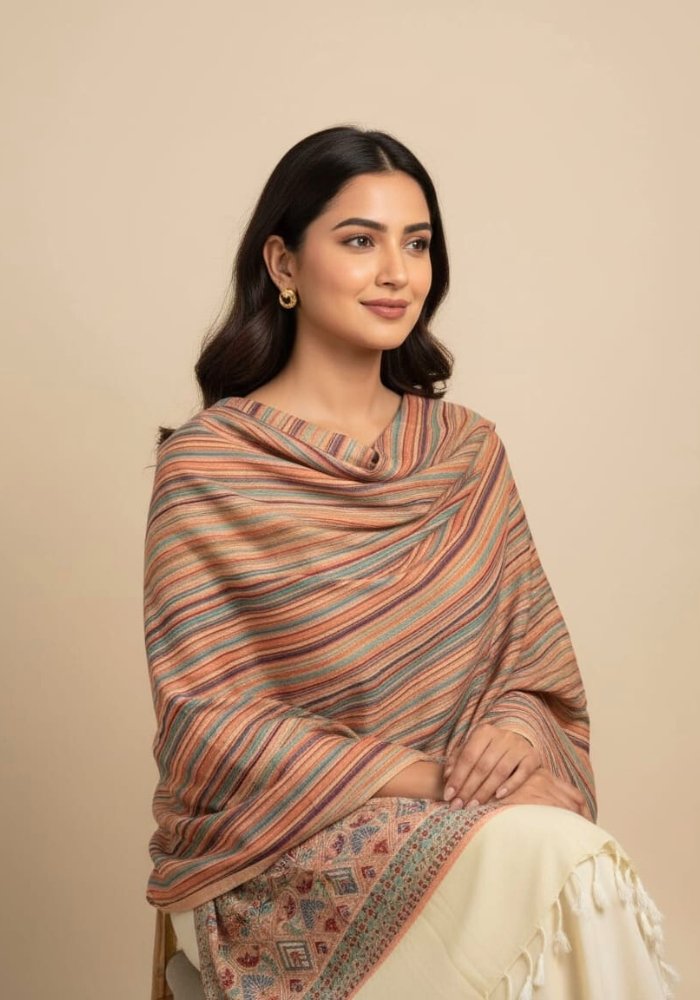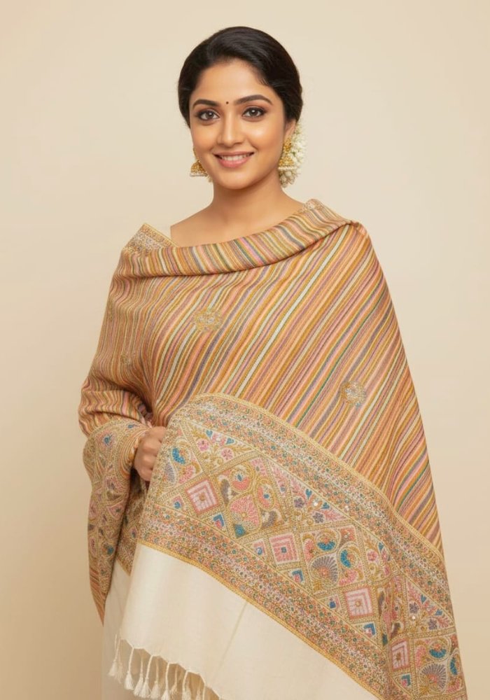 Multicolour Striped Kashmiri Woven Shawl (Blush Beige)