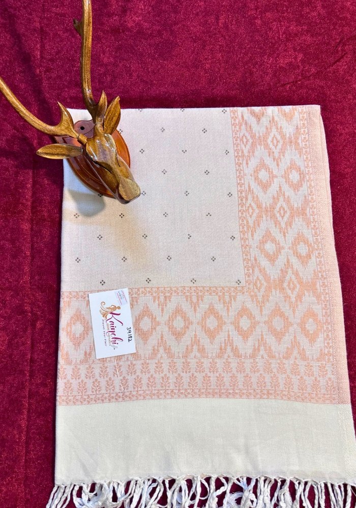 Ivory with Peach Geometric Border (Wool Stole)